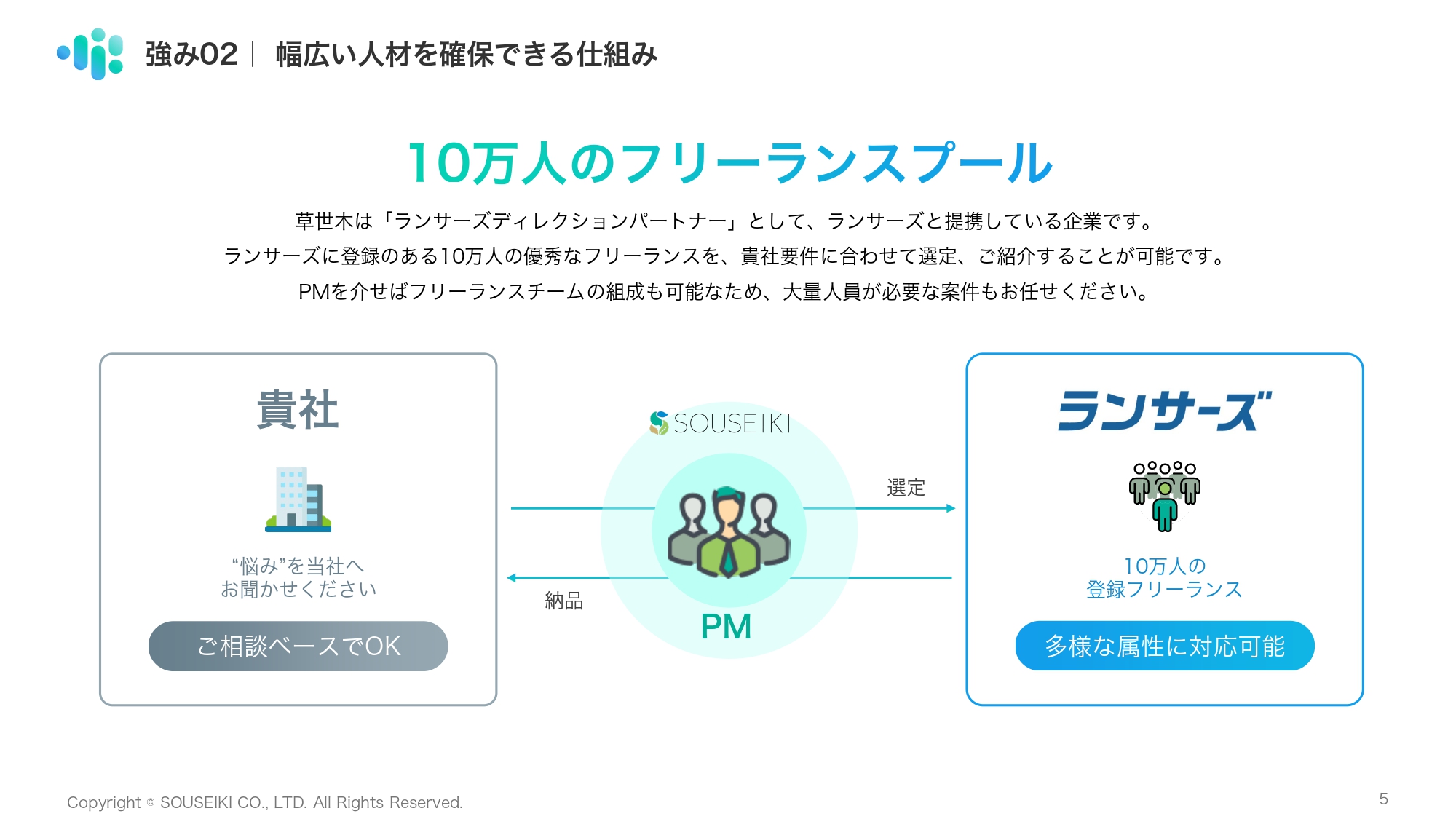 2. 10万人規模の人材プール(ランサーズ提携)